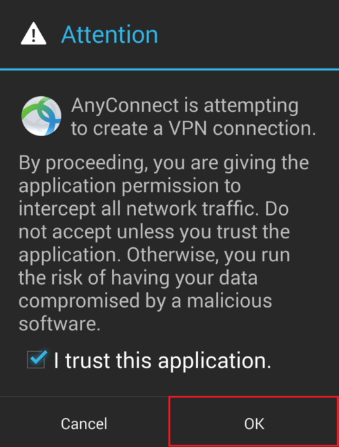 2. After installation of the Cisco AnyConnect app tap on the AnyConnect icon