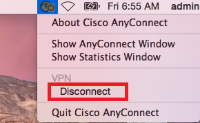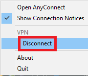 1. Press the tray icon, shown on the image below and click the "Disconnect" button: