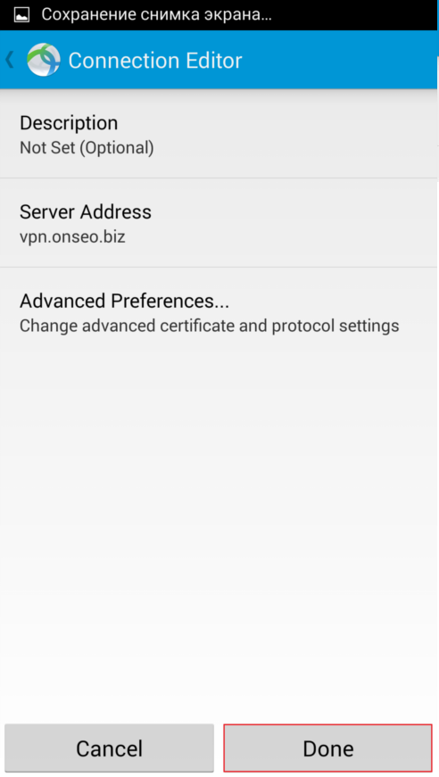 5. Enter "vpn3.onseo.biz" into the form shown below and tap the "save" button: