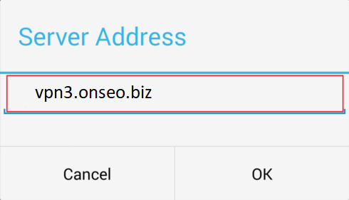 7. Enter "vpn3.onseo.biz" into the form shown below and tap the "OK" button: