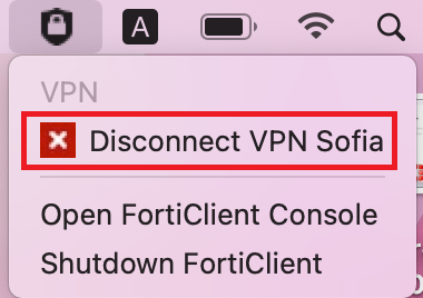 1. Press the tray icon, shown on the image below and click "Disconnect VPN Sofia":